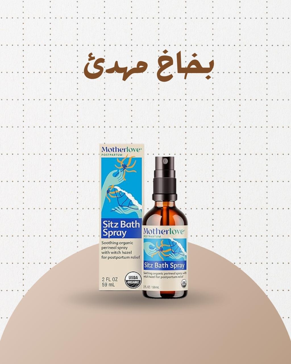 “يحتوي هذا البخاخ على خليط عضوي من Witch Hazel وYarrow وUva Ursi وLavender الذي يعمل بتناسق لتهدئة التورم والحرقة بعد الولادة، مع إحساس منعش ومعتدل بفضل تأثيره المبرد والملطف.”
